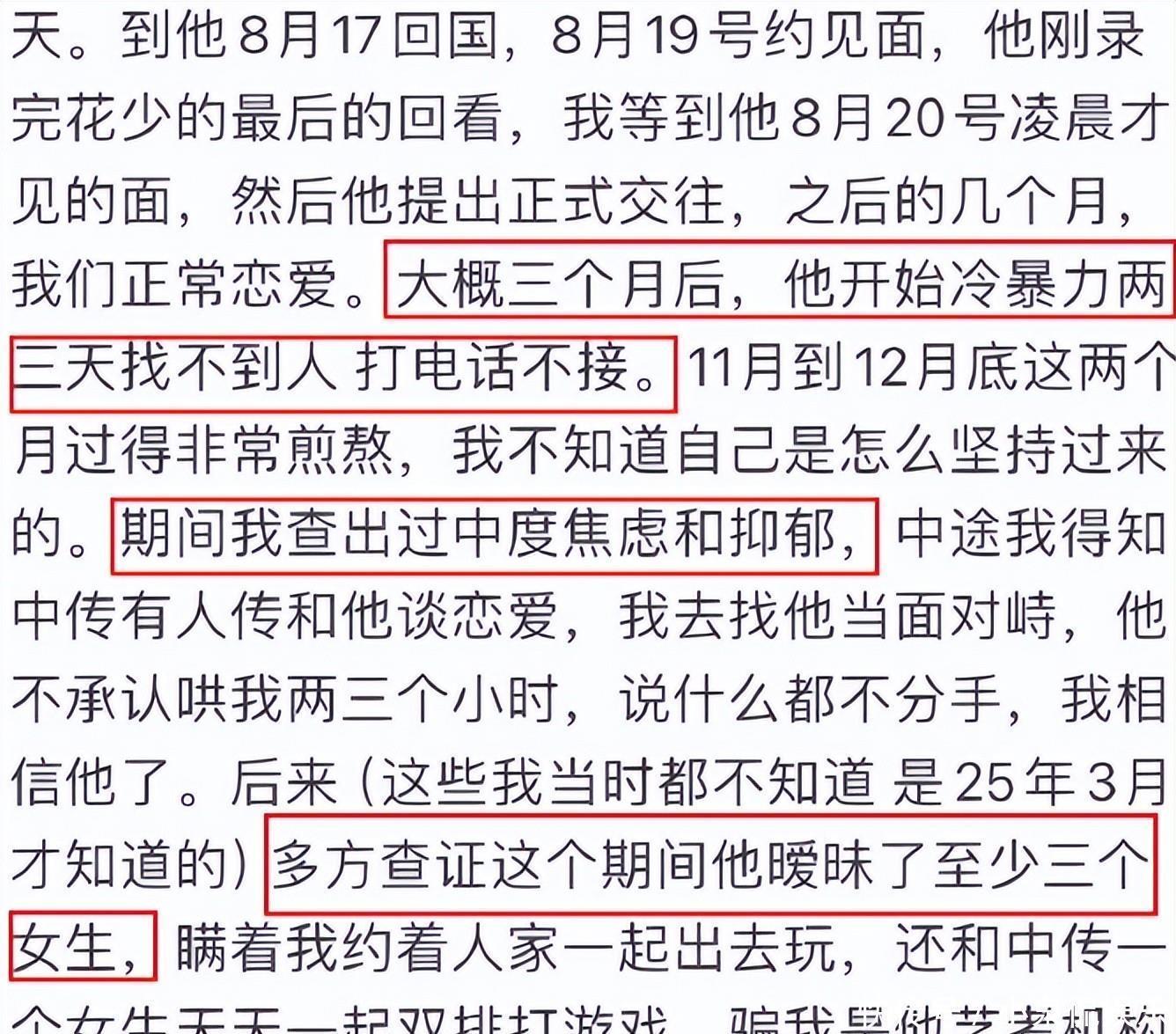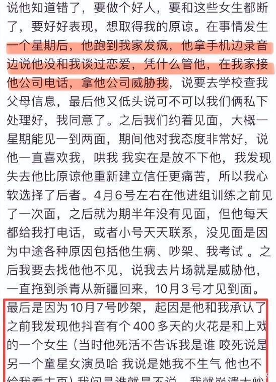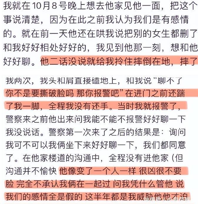 被李小姐发现他脖子上的草莓印后又一通解释圆了过去,这边哄好了又去另一边约会跨年了。从李小姐发了满满的五张备忘录截图来看,男方不仅同时交往4个女生,甚至还动手打了李小姐,