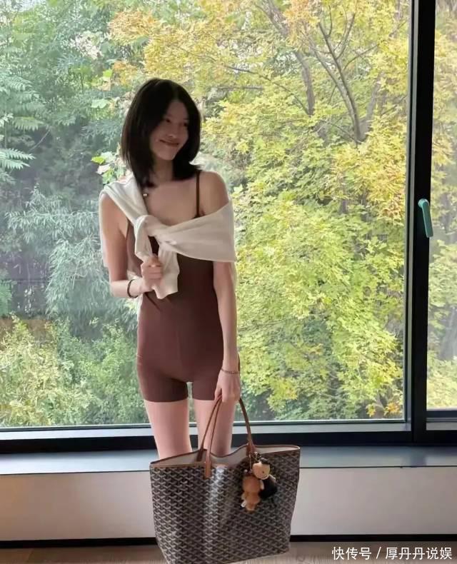 虽然整体依旧纤细,但胸部明显比产前更显丰满,和连体衣那张的扁平感形成反差。