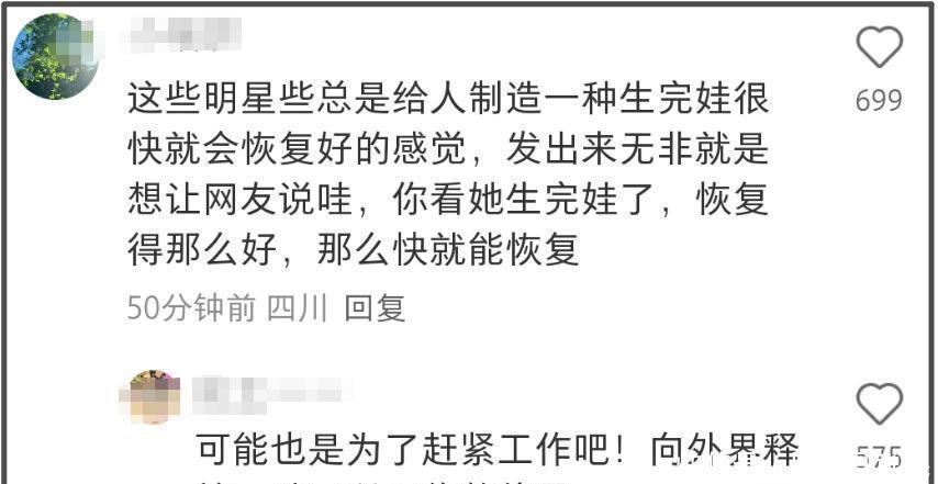 也有人担心这种晒照会引发普通妈妈焦虑:“有团队帮忙当然恢复快,别误导普通人。”