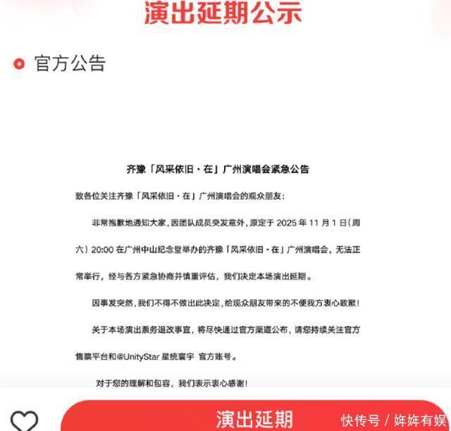 下午,其余演唱会紧急宣布演出延期,公告里只说,团队成员突发意外。