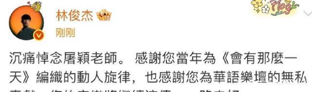林俊杰发文悼念,原来他演唱过由屠颖编曲的《会有那么一天》。