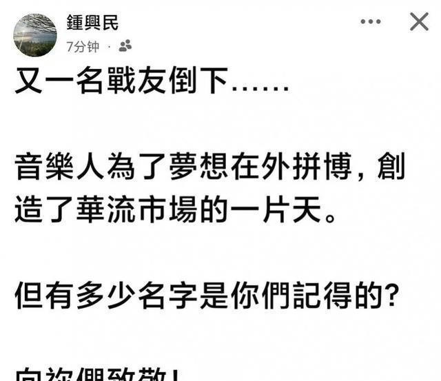 钟与民、李丽芬发文悼念,屠颖的离开是华语乐坛巨大的损失,他才62岁,实在可惜。